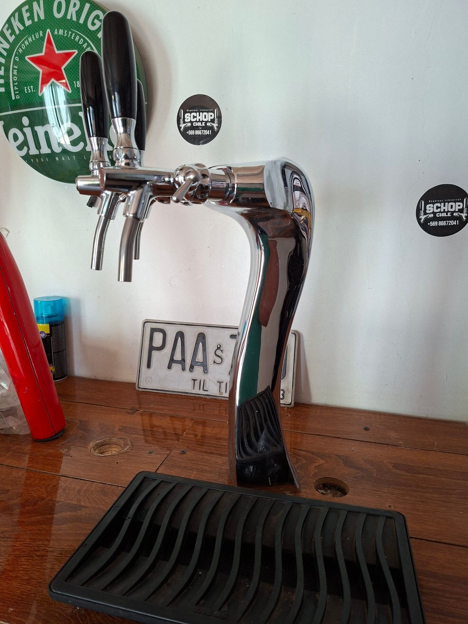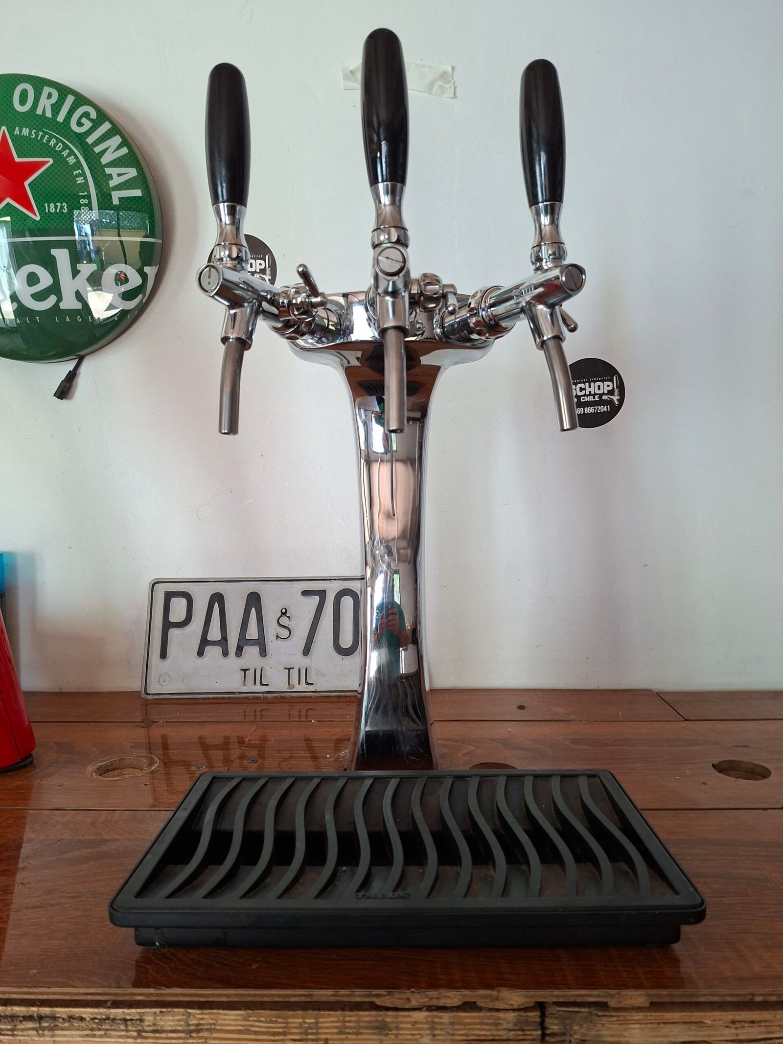 Maquina de schop Vinservice, con tres salidas, tres grifos Celli, columna Cobra maciza, manometro regulador, bandeja, tres pinchadores a eleccion Enfriador de tres salidas vinservice